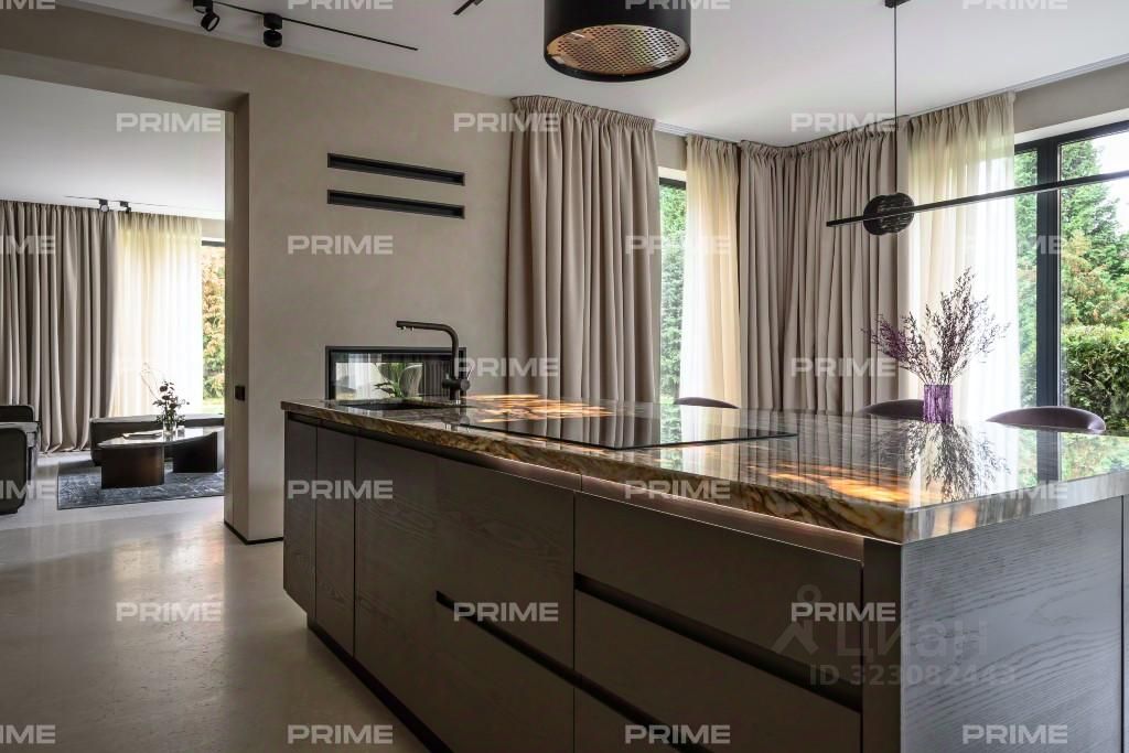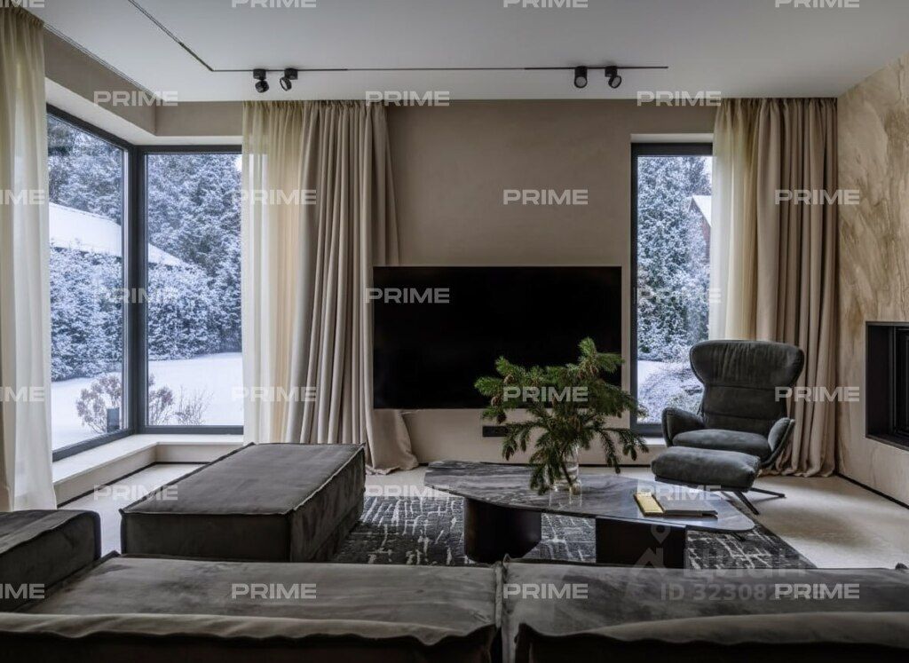 В архитектуре, где каждая линия подчёркивает эстетику, а пространство - свободу, рождается загородное домовладение в престижном посёлке ''Загорье'', всего в 17 км от Рублёво-Успенского шоссе. На участке 12 соток расположен дом площадью 310 м - под ключ, с мебелью и техникой, готовый к жизни без дополнительных вложений. Современный стиль с плоской кровлей, акцентным остеклением и лаконичным фасадом визуально объединяет интерьер с природным окружением. Интерьер выполнен в дорогом современном стиле с элементами минимализма и мягкой геометрии. Светлые тона, натуральные материалы, встроенное освещение и панорамные окна создают атмосферу уюта и визуальной лёгкости. Пространства наполнены воздухом, а мебель подобрана с акцентом на комфорт и функциональность - от мягких диванов до лаконичных систем хранения. Планировка первого этажа организована с вниманием к ритму жизни. Просторная гостиная с камином - центр притяжения, где можно проводить вечера в кругу семьи. Кухня-столовая с выходом на террасу - идеальное место для завтраков на свежем воздухе и приёма гостей. Также на этаже предусмотрены холл, гардеробная, кабинет, санузел и технические помещения, включая котельную и кладовую. Планировочные решения обеспечивают удобную навигацию и приватность зон. На втором этаже - три спальни, каждая с индивидуальным характером и собственной ванной комнатой. Пространства оформлены в мягкой палитре, с акцентом на текстуры и свет. Ванная с окном - редкий элемент, создающий ощущение открытости и связи с природой. Гардеробная - полноценная зона хранения, интегрированная в приватную часть дома. Участок площадью 12 соток грамотно зонирован: здесь можно организовать террасу, зелёную зону отдыха, детскую площадку или компактный сад. Панорамное остекление визуально расширяет границы дома, объединяя интерьер с ландшафтом. Пространство вокруг дома - это продолжение архитектурной идеи, где каждый элемент работает на атмосферу уединения и комфорта.