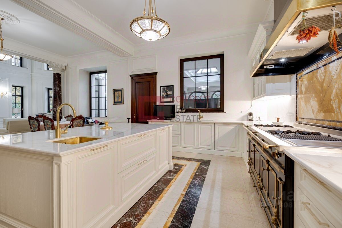 ID 543469. Дом 1250 кв.м в стиле американской классики, сдается впервые! В доме: 2 гостиные с камином, кухня-столовая с выходом в зону гостиной барбекю, рабочая кухня, 4(5) спален, кабинет, SPA-зона: бассейн, хаммам, сауна с русской печью с изразцами, тренажерный зал, домашний кинотеатр, бильярдная, мансардная студия для проживания молодого поколения. На участке 52 сотки помимо основного дома расположены закрытая беседка-барбекю с профессиональной кухней, домик для персонала. Выполнены ландшафтные работы, автополив, фонтанная группа на въезде. Охраняемый коттеджный поселок с пропускной системой.