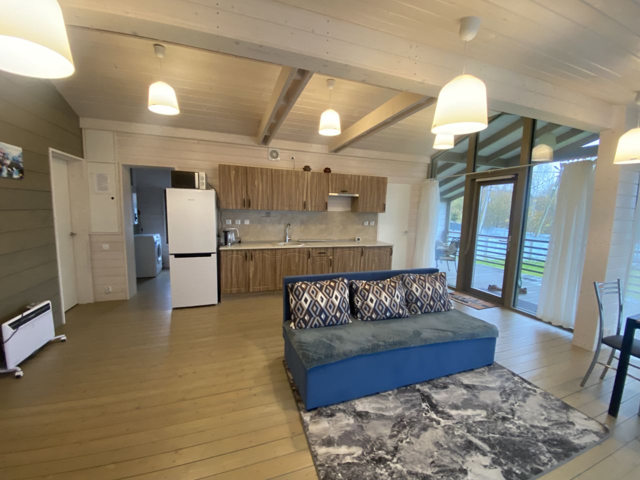 Предлагаю Вашему вниманию уютный дом. Дом построен в 2023г. компанией DUBLDOM, проект Кедр, жилая площадь 65м2. Дополнительная сделана терраса буквой Г, площадь 70 м2. Общая площадь застройки (102,8м2) с террасой (70м2) равна около 173м2. Эксплуатируется дом с 2024г., в идеальном состоянии с полным комплектом мебели и посуды. В доме есть всё необходимое для комфортного проживания: вентиляция, печь-камин Бренеран, холодильник, стиральная машинка, шторы, жалюзи, терраса крытая и открытая по периметру дома (с ограждением).