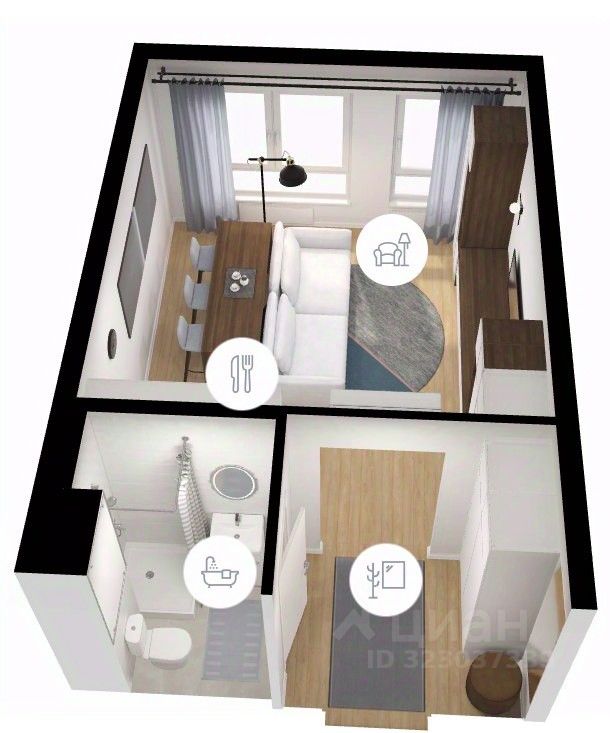 Продается студия с двумя окнами в ЖК ''Яуза парк''. Строительный адрес: корпус 4. Выдача ключей в ноябре 2025. Квартира с отделкой. Хороший вид из окон. Нет эффекта: окна в окна!