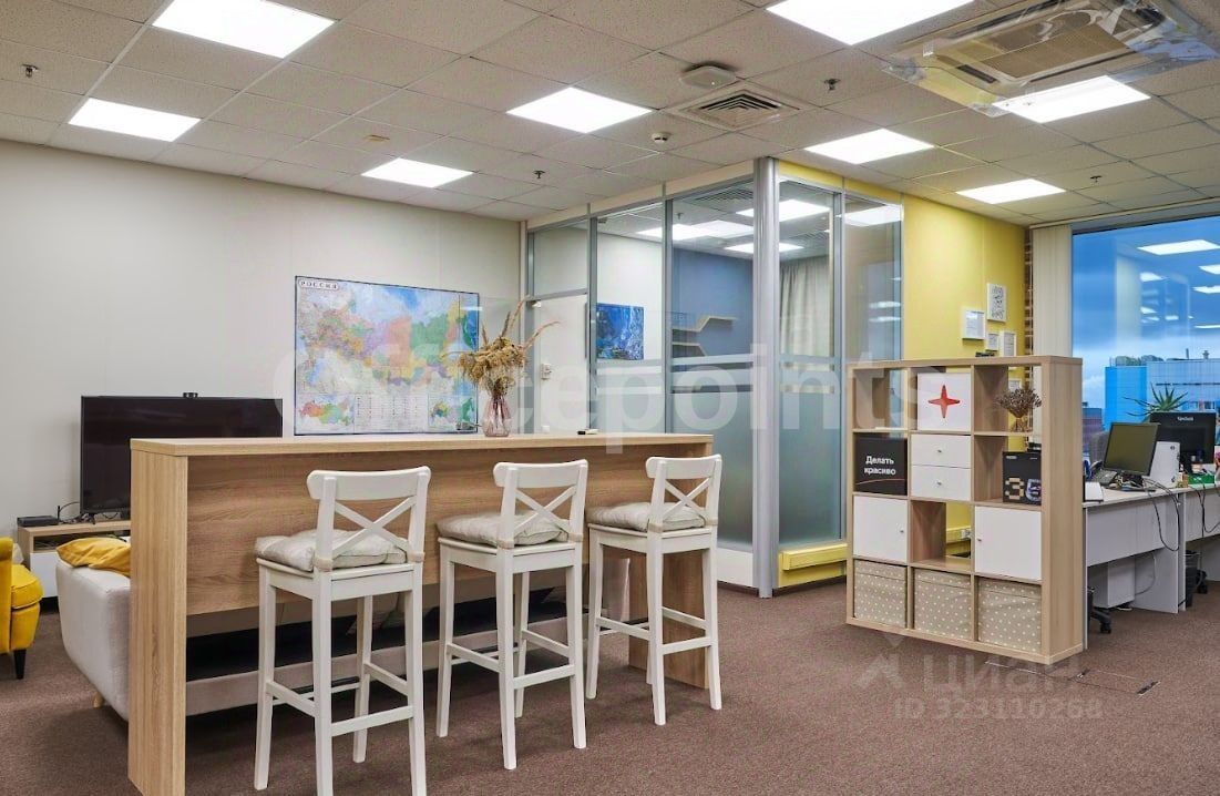 В помещении дизайнерская офисная отделка, кабинетная планировка.