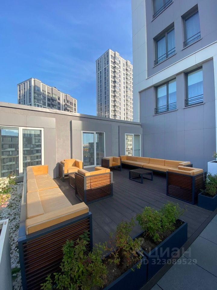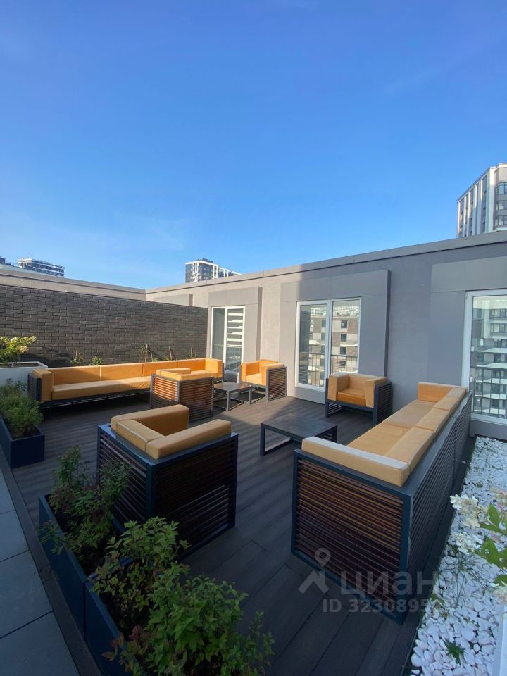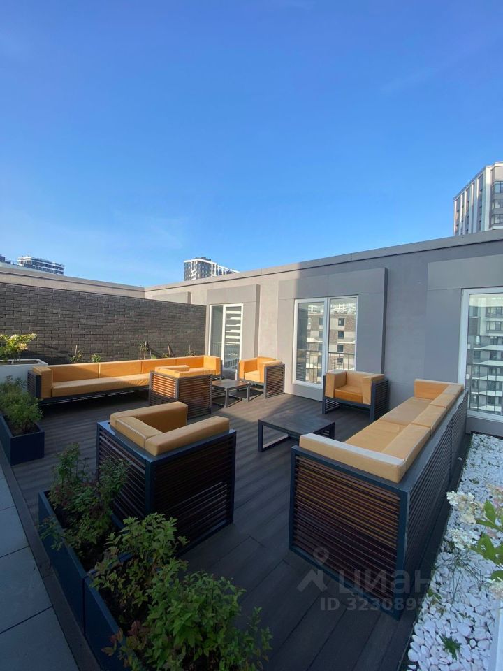 Общественное пространство на 10 этаже, только для жителей дома с просторной террасой и мягкой мебелью для отдыха.