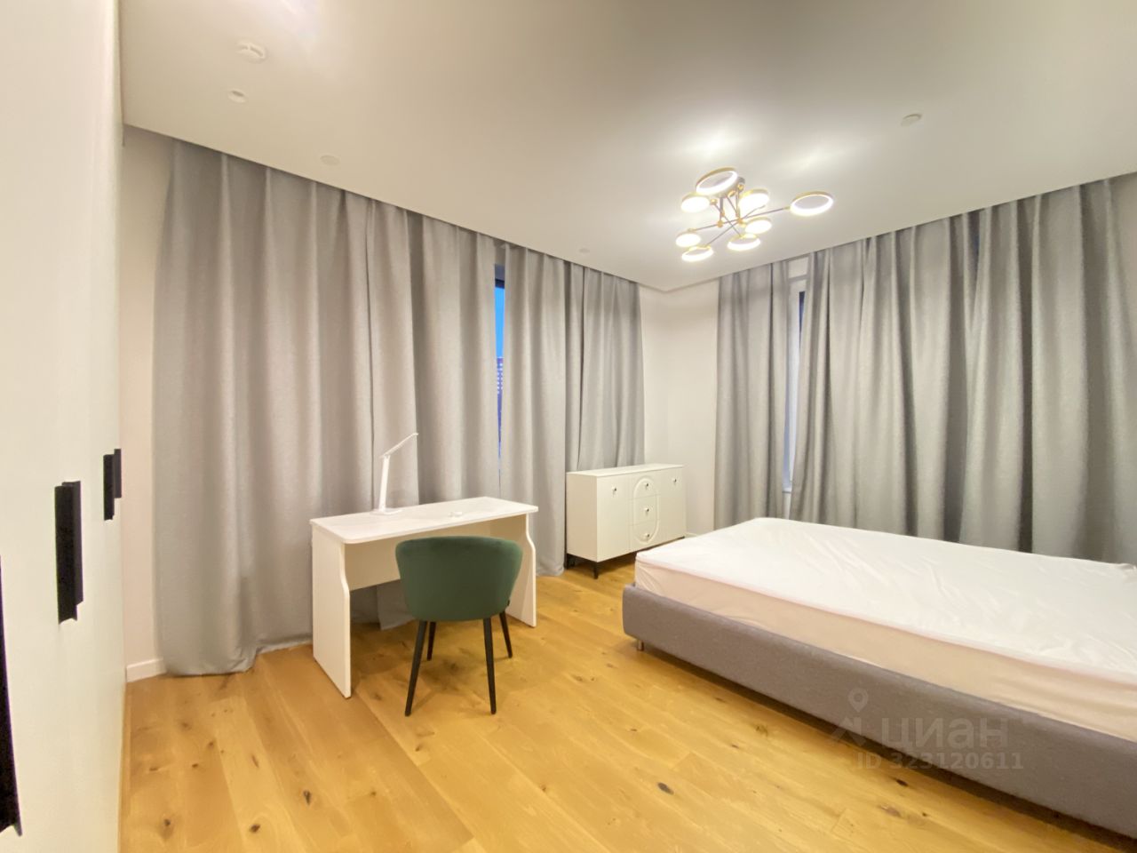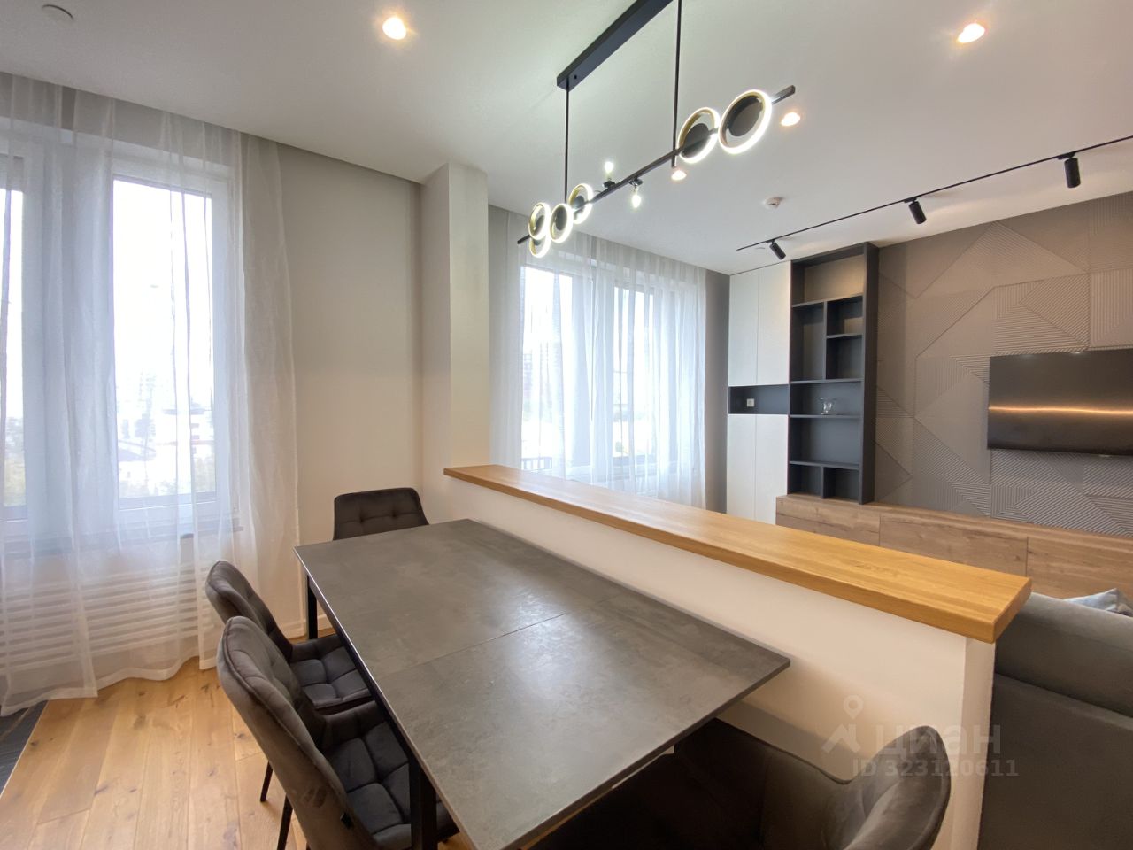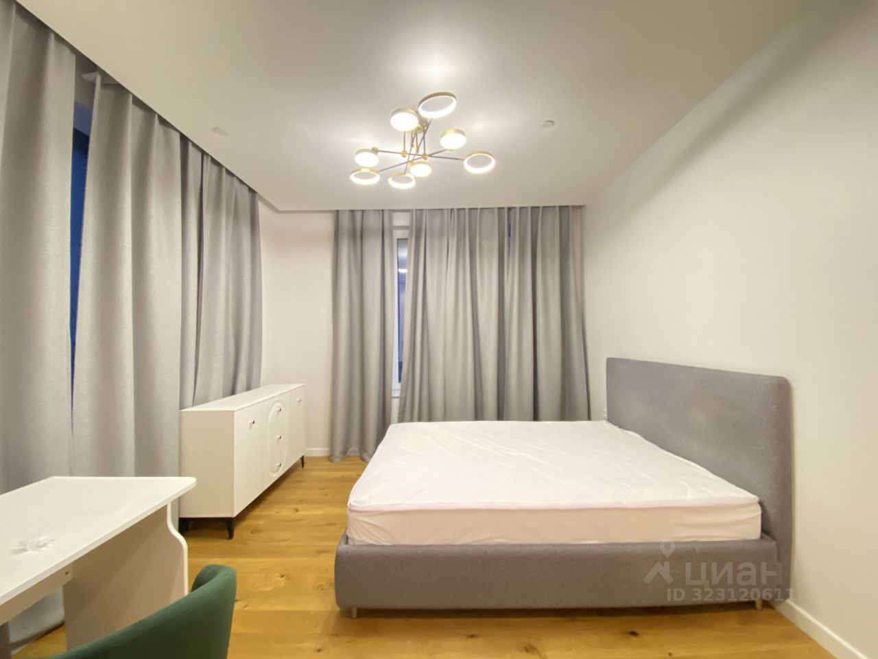 По планировке: просторная кухня-гостиная с выделенной обеденной зоной, две изолированные спальни, прихожая, гардеробная, два раздельных санузла.