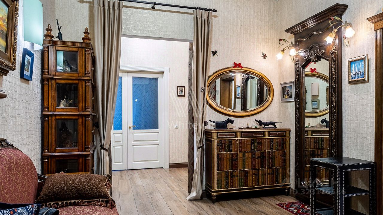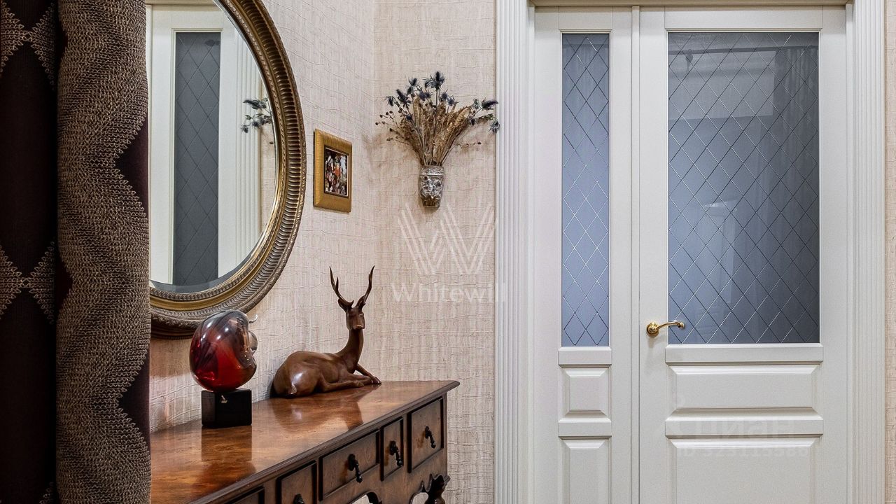 Бонус партнёрам 50%. Апартаменты с одной спальней общей площадью 146 м² в доме ''Трубная, 2'' на пятом этаже. Интерьер оформлен в классическом стиле. Планировка включает гостиную, кухню с обеденной зоной, спальню с собственной гардеробной и санузлом, кабинет, гостевой санузел, балкон и холл. Апартамент полностью укомплектован мебелью и бытовой техникой. Установлена система индивидуального кондиционирования. Панорамные окна ориентированы на две стороны, открываются виды на город и Трубную площадь.