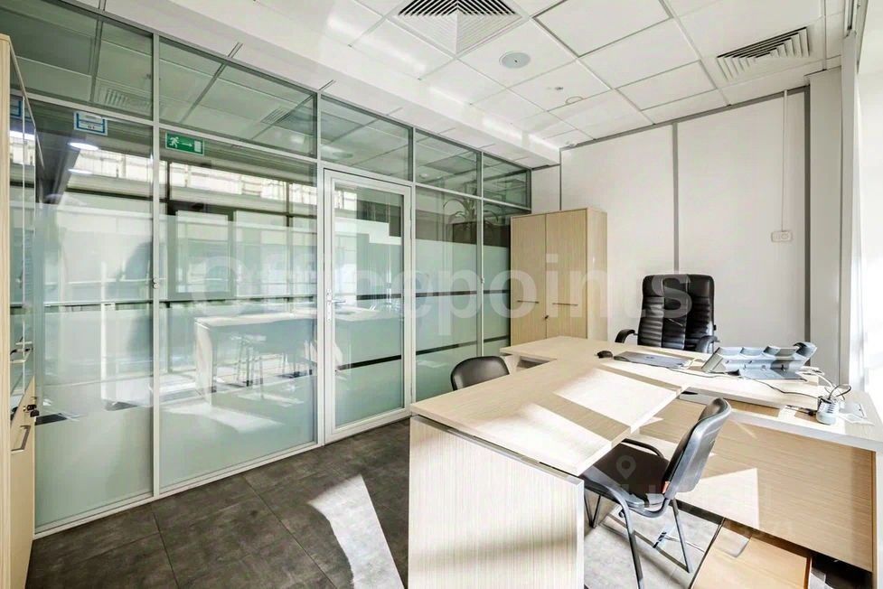 В помещении выполнена высококачественная отделка, смешанная планировка. Центральная система кондиционирования и приточно-вытяжная система вентиляции. В наличии подземная парковка (36 000 руб. за м/место в месяц).