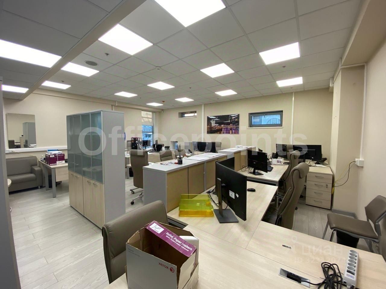 В помещении стандартная офисная отделка, кабинетная планировка. Приточно-вытяжная система вентиляции, центральная система кондиционирования. В наличии наземная парковка.