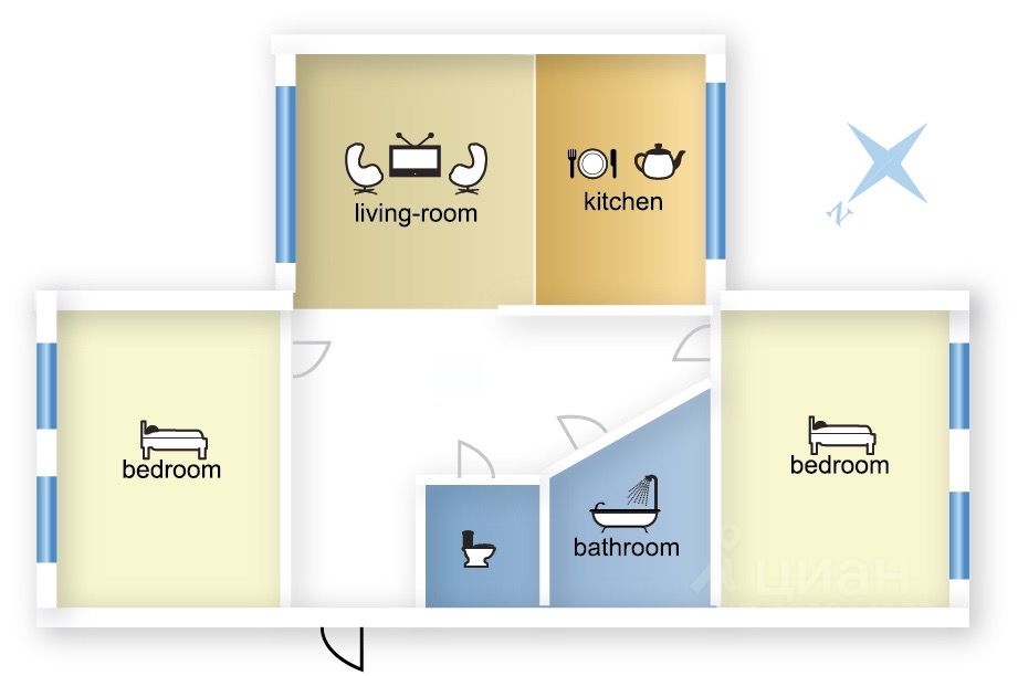 Квартира полностью меблирована и готова к комфортному проживанию. На кухне и в комнатах есть вся необходимая мебель. В квартире установлена современная бытовая техника: кондиционер, холодильник, посудомоечная и стиральная машины, а также телевизор. Санузел совмещённый, оборудован ванной, что подойдёт для любителей расслабиться после рабочего дня.
