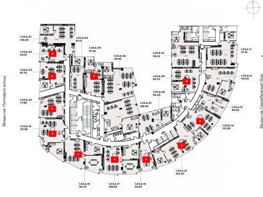 . Офис площадью 111.1 м2 расположен на 3 этаже МФК, без отделки, потолки 3,30 м.