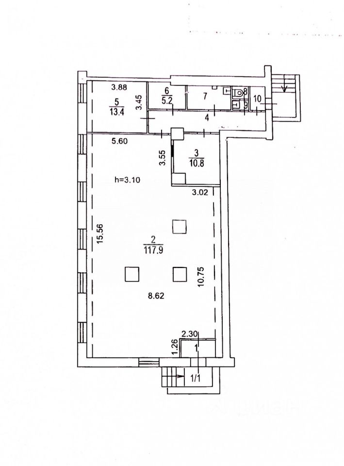 Характеристики помещения: Общая площадь: 170 кв. м. Планировка: Состоит из 10 изолированных помещений, что идеально для зонирования (торговый зал, склад, административные кабинеты, комната отдыха). Коммуникации: В наличии ''мокрая точка'' (подведена вода и канализация). Входы: Два входа — парадный с улицы для клиентов и запасной со двора для удобной разгрузки товара.