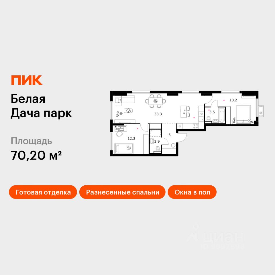 Общая площадь70,2 м2