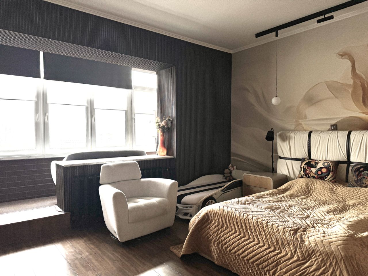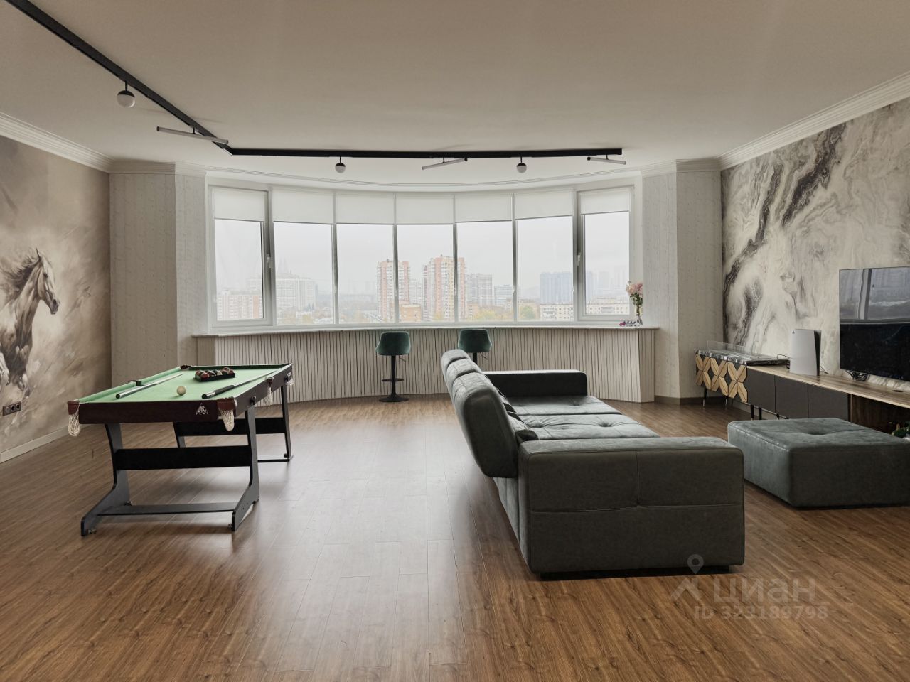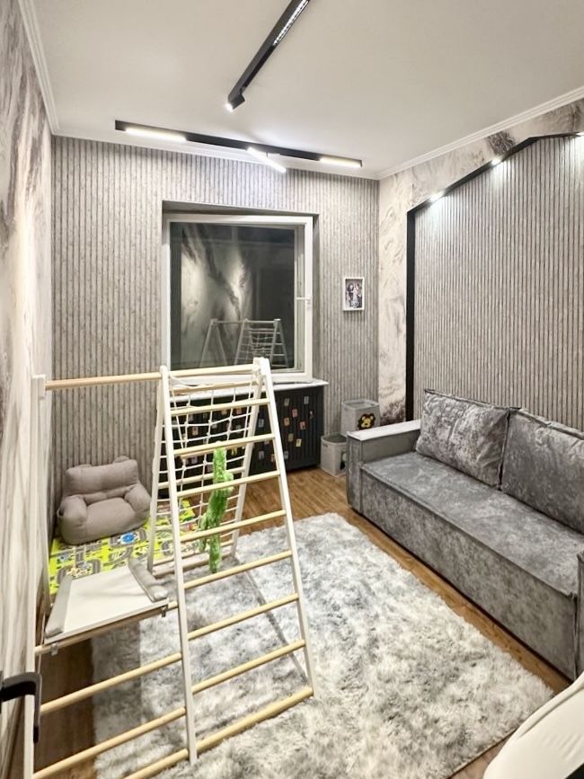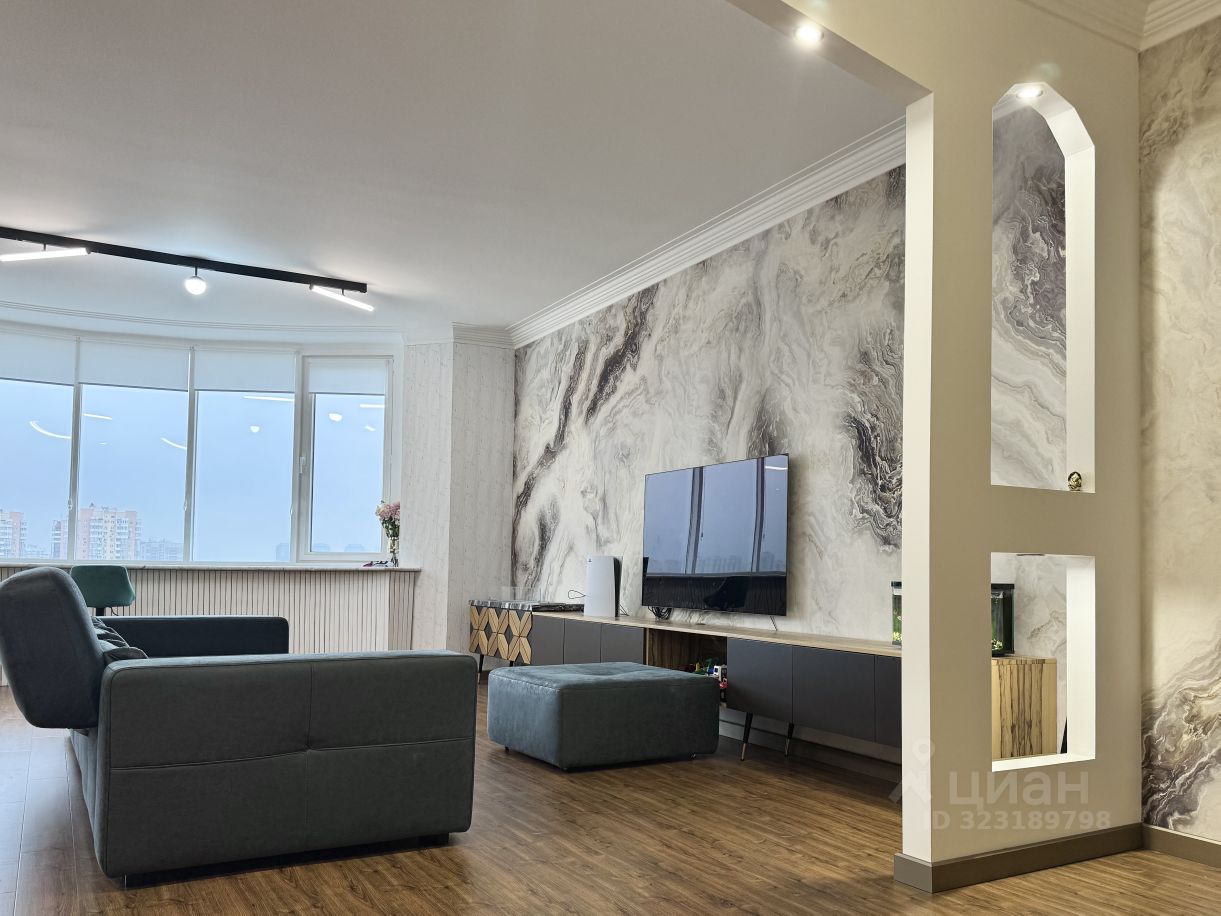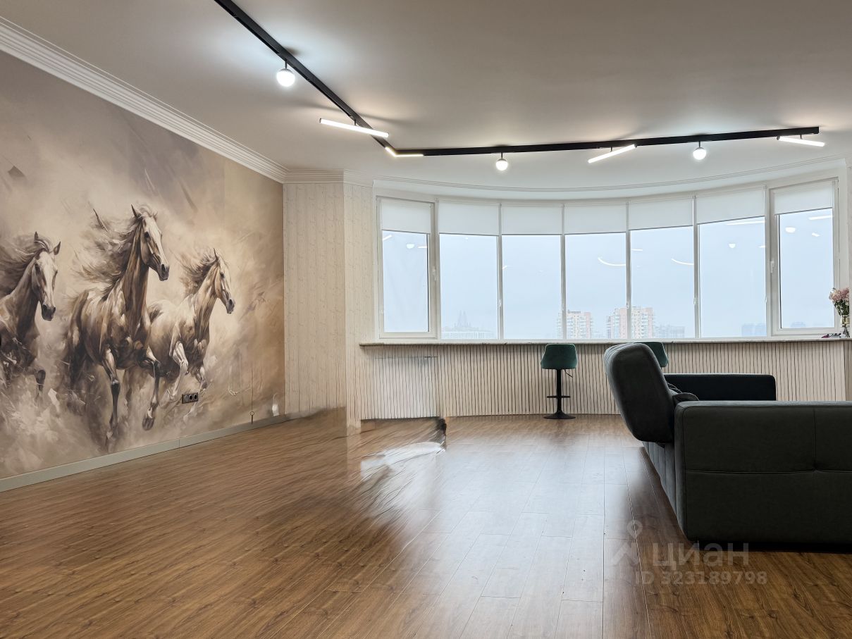 Планировка: Просторная гостиная с большим окном и панорамными видами - вся Москва как на ладони, Кухня с выходом на балкон, Спальня с большой лоджией, Две дополнительные комнаты —под детские, кабинет или гостевые, Два санузла и множество мест для хранения. Высота потолков - 3м