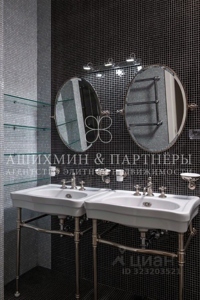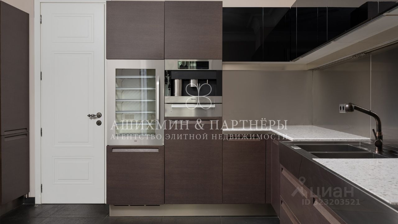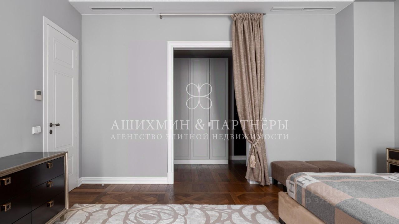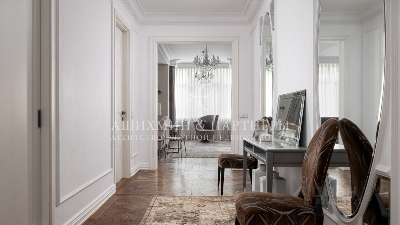 В квартире выполнена высококачественная отделка в стиле современной классики. Дорогая мебель и аксессуары (кухня Varenna Poliform, плитка Sicis, сантехника Volevatch, бытовая техника Miele и Gagenau), модульный паркет Версаль (дуб, Франция), система кондиционирования Daikin, много мест для хранения.