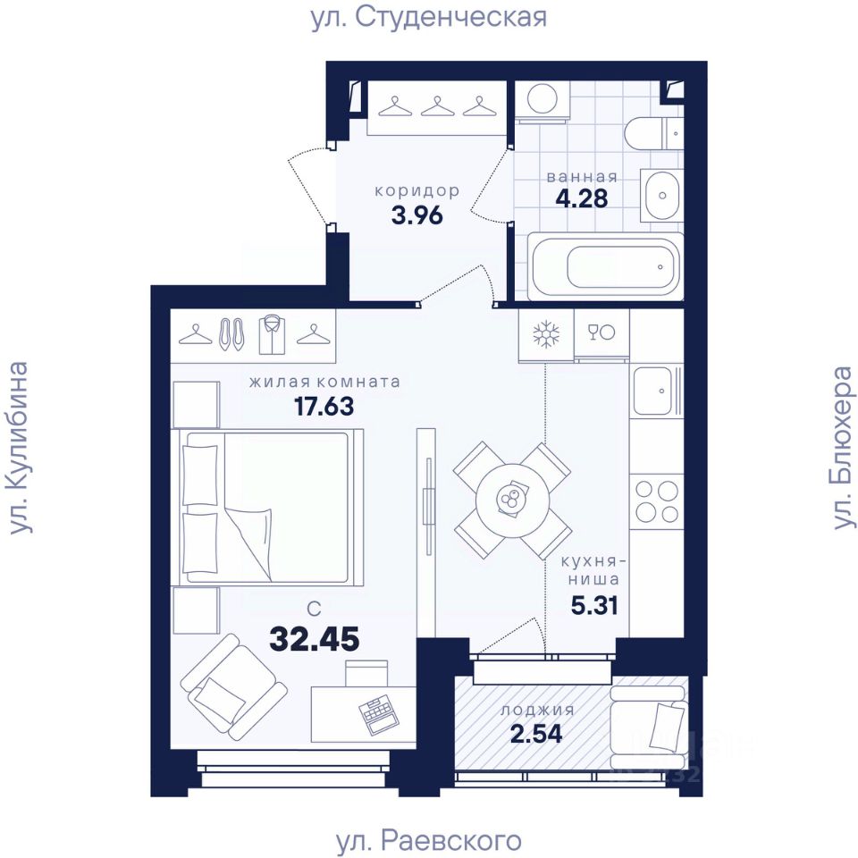 Общая площадь32,45 м2