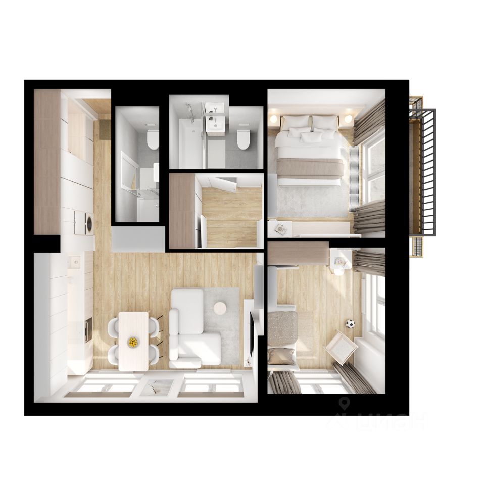 В ''Бусиновском парке'' предусмотрены квартиры с панорамным остеклением, различными балконами, эркерами, угловыми окнами и большим количеством окон — до пяти в одной комнате. В таких квартирах широкий угол обзора: можно пить кофе, наблюдая за жизнью на улице и наслаждаясь ощущением простора. Ещё больше комфорта придаст мягкий солнечный свет, который равномерно осветит всю квартиру. Артикул 954512 (Заст