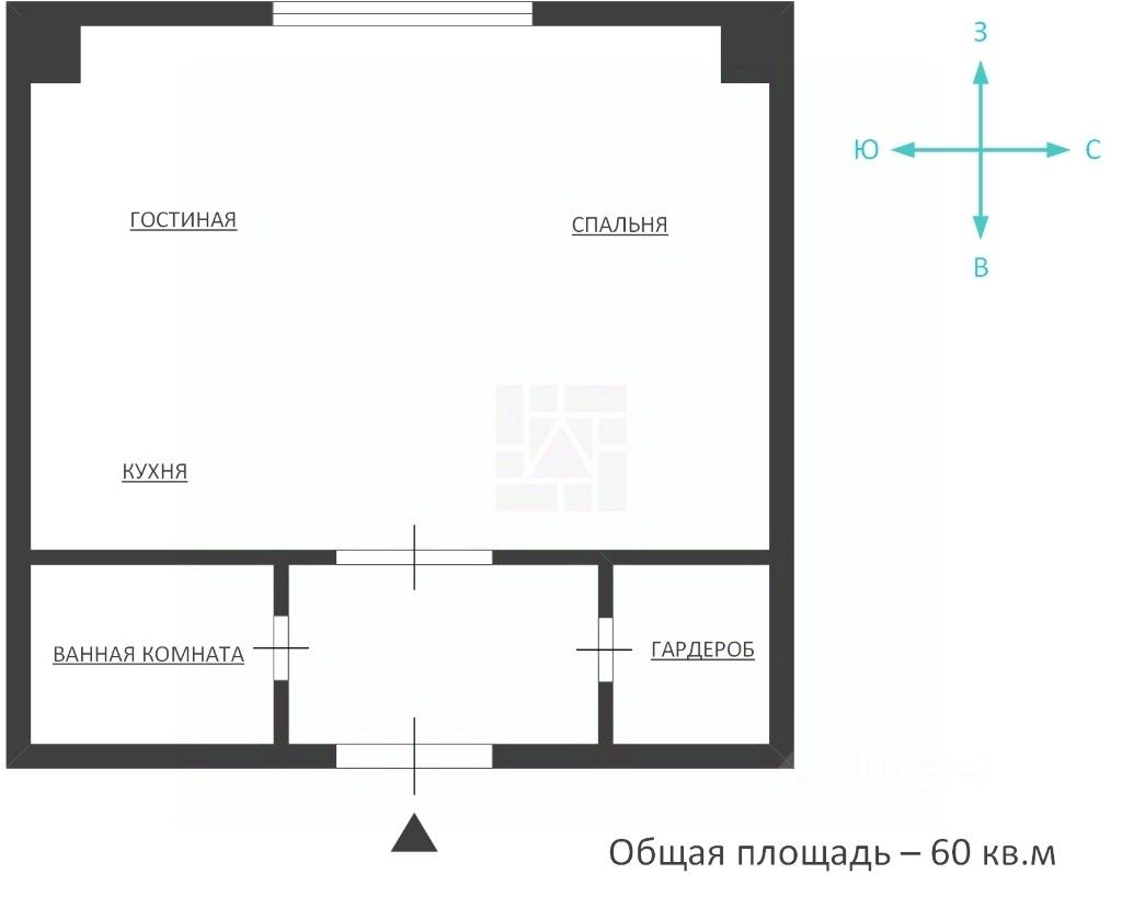 Функциональная планировка: гостиная-столовая с зоной кухни, зона спальни, ванная комната, гардеробная, холл.