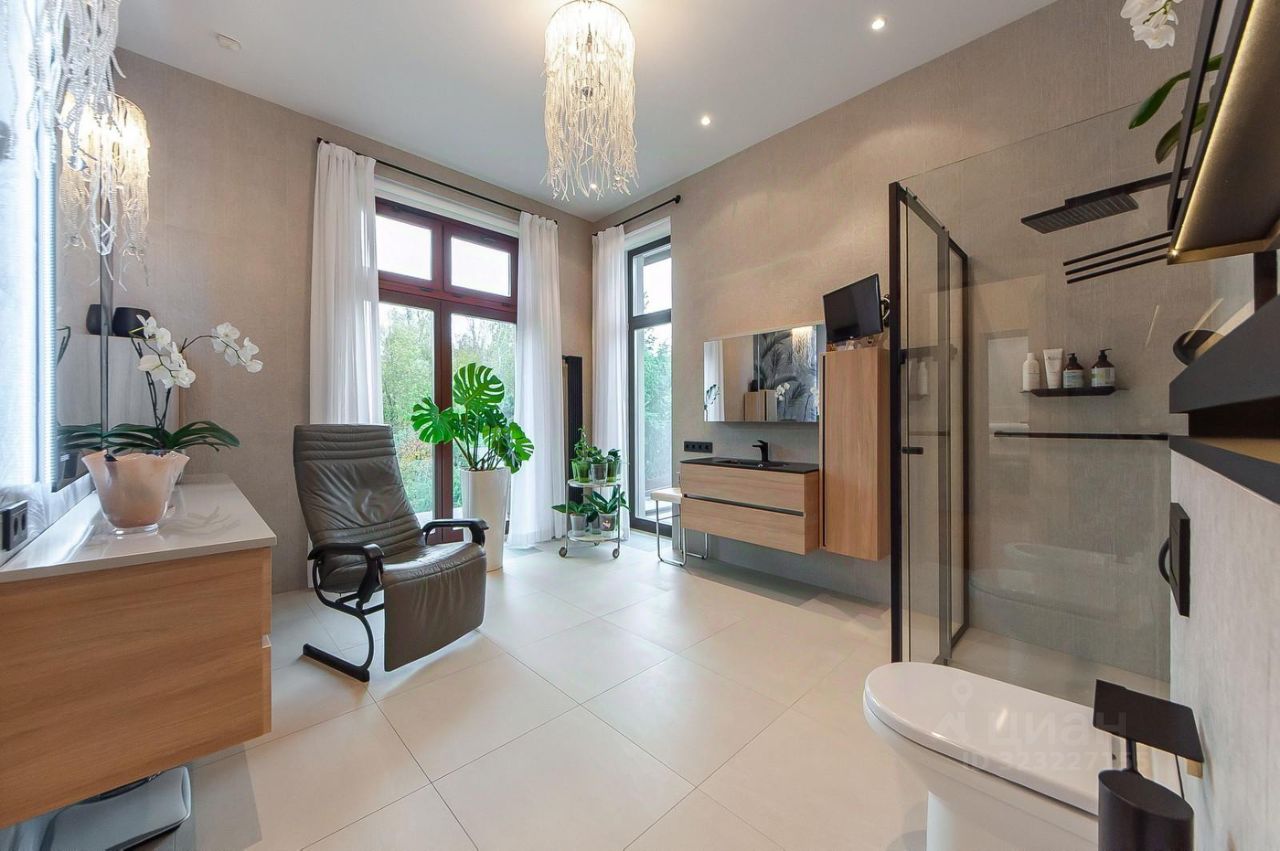 Дом расположен в охраняемом коттеджном поселке Променад в окружении хвойного леса на берегу реки Незнайка с уютной набережной. 12 км от МКАД по скоростному Киевскому шоссе. Полностью благоустроенный проселок, с богатой инфраструктурой: детские и спортивные площадки, детский сад, теннисные корты, футбольное поле, фитнес-центр с бассейном, бильярдная, ресторан, магазин, велосипедная трасса в лесу. Обслуживание и управление поселком осуществляет ТСН Променад. Транспортная доступность, развитая инфраструктура, хорошая экология, живописная природа (лесные массивы, реки и озера) делают его интересным и привлекательным для загородной жизни. Дом для большой семьи, просто потрясающий, стильный, современный, с большими панорамными окнами, вторым светом, террасой, в нем абсолютно все делали для себя, все идеально, качественно и со вкусом, начиная от самого дома и заканчивая ландшафтом. По планировке: 1 этаж: гостиная с камином и вторым светом, столовая зона, кухня, кабинет, санузел, гостевая спальня, постирочная, терраса, гараж. Автономный отдельный блок со своим входом для обслуживающего персонала (спальня, кухня, гардеробная, сан/узел). 2 этаж: холл, мастер-спальня с гардеробной и санузлом, взрослая спальня смежная с детской со своим сан/узлом, 2 спальни со своими санузлами, игровая. На участке (36,5 сот.) выполнен ландшафтный дизайн, газон, искусственный пруд с фонтанчиком, беседка, мангал, детская площадка, много зелени, деревья, цветы. Делали реально для себя, вложения большие, вы это увидите. Звоните, готова все подробно рассказать и оперативно показать. Приезжайте смотреть, 100% вам понравится.