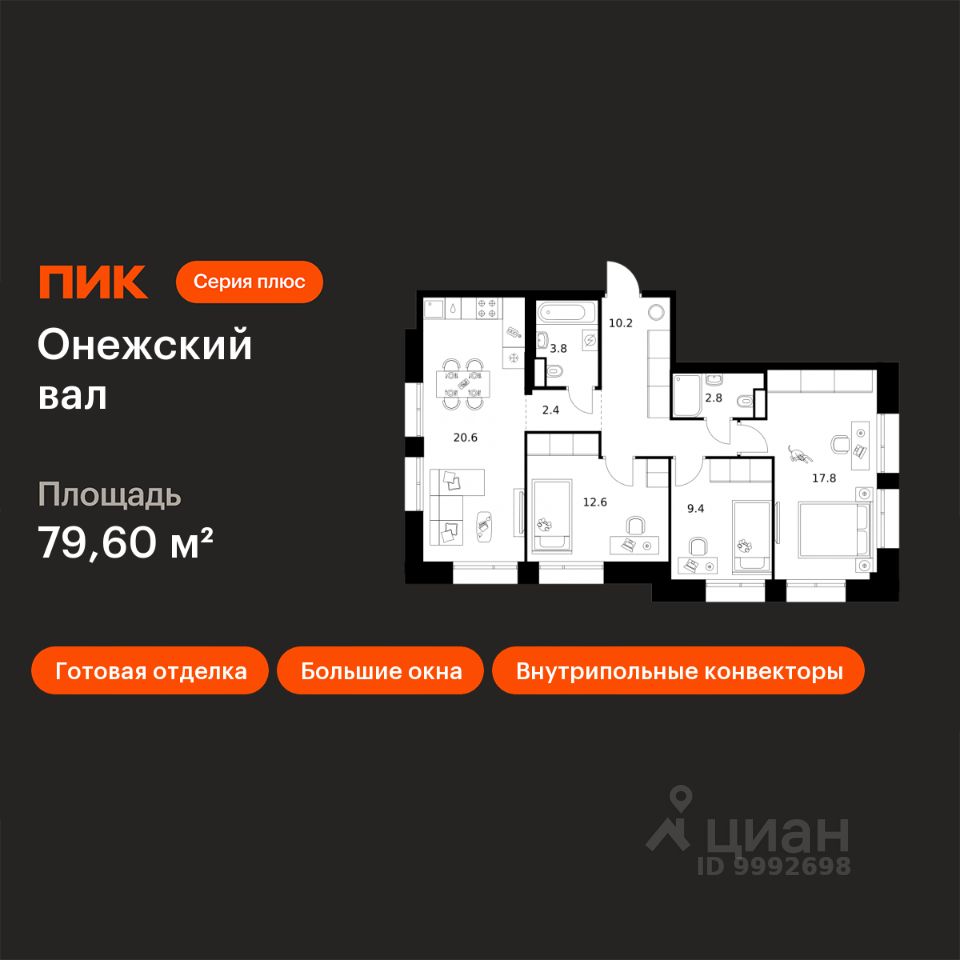 Новостройка! Продается 3-комн. кв-ра площадью 79,6 кв.м, (Корпус 1.1.1, Секция 1) 23 этаж 23-этажного дома в Онежский вал от ПИК. Квартал ''Серии плюс'' строится на севере Москвы, в 10 минутах пешком от станции метро ''Селигерская'' и МЦД ''Моссельмаш''. Проект понравится всем, кто привык к комфортной жизни и ценит возможность оставаться в ритме большого города и быстро добираться до центра столицы. Концепция проекта связывает квартал с природой Русского Севера. В проекте три акцентные башни с террасами и контрастными фасадами из матовой плитки и металла. Корпуса разной этажности повторяют силуэты хвойных деревьев, а архитектурные элементы на фасадах — напоминают природные рисунки скал. Блестящие алюминиевые панели в тон матовой плитке создают игру текстур на верхушках корпусов. Благодаря продуманности архитектуры, в квартирах есть панорамные окна в пол, открытые, французские, угловые балконы и террасы. Собственная продуманная инфраструктура проекта сделает жизнь в квартале удобной и поможет сэкономить время на бытовых делах. На территории мы построим свои детский сад, школу и поликлинику. А на первых этажах квартала откроются магазины, кафе, пункты выдачи и полезные сервисы. Для занятий спортом рядом с домом появится спортивный комплекс площадью 5000 м2 с залами для тренировок и просторным бассейном. А закрытый двор-парк и широкий пешеходный бульвар станут местом для прогулок и спокойного отдыха. #d19.02# Артикул 1039604 (Застройщик ООО СЗ ''ПрометейСити'')