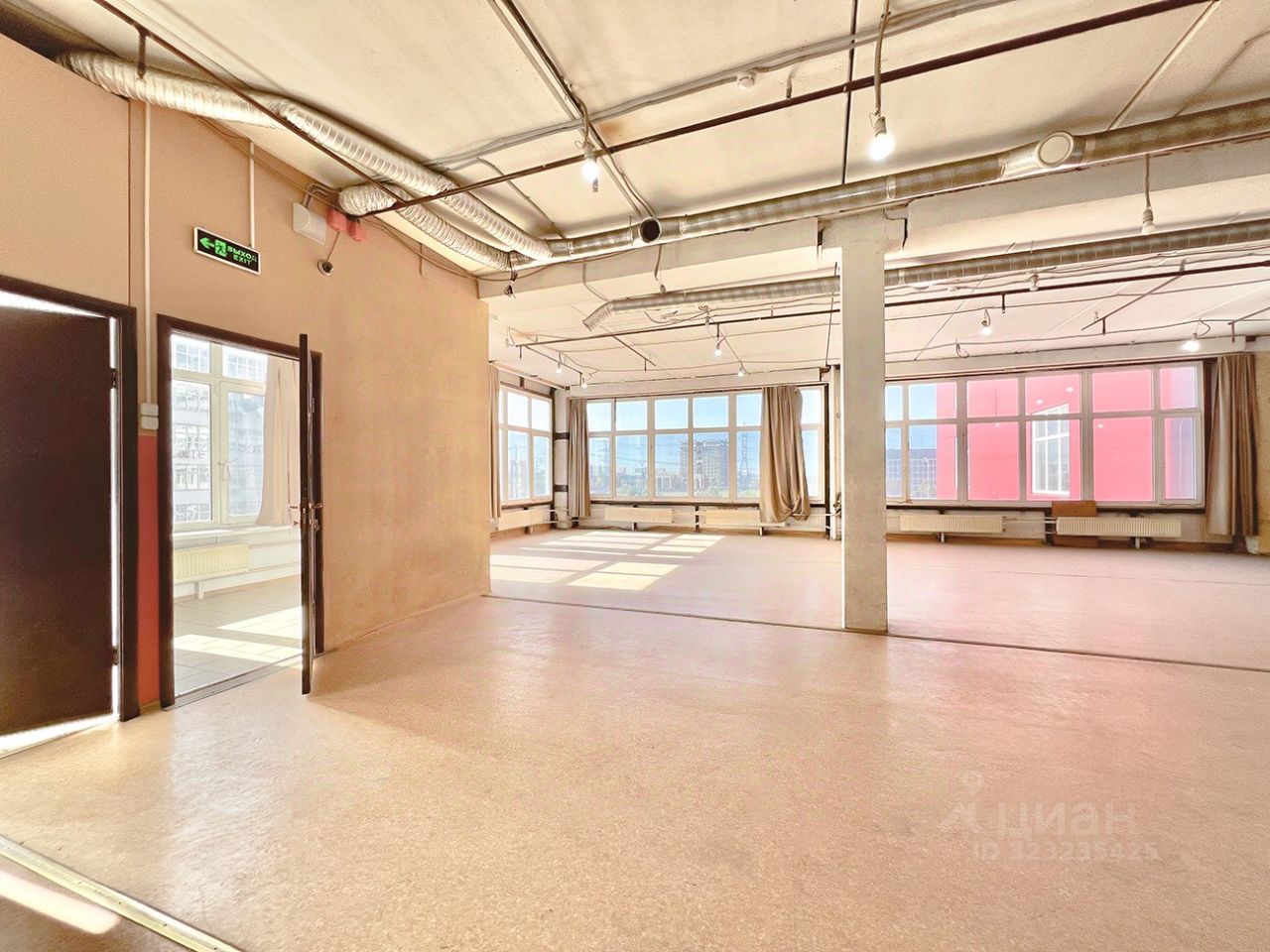 Помещение светлое, просторное, опенспейс Пол - линолеум+плитка, стены - обои под покраску, потолок - покрашен