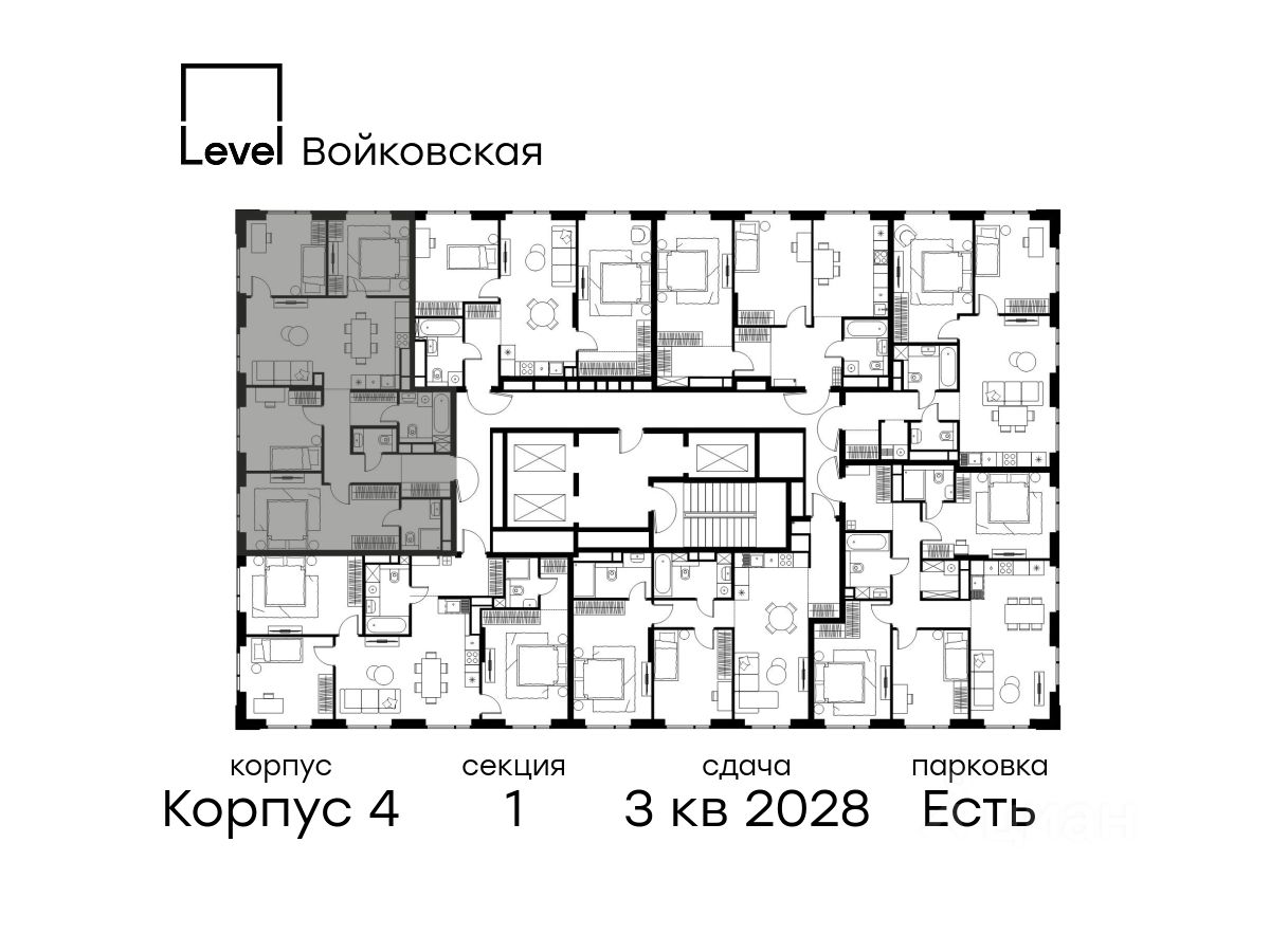 Продается 4-комнатная квартира площадью 99.10 кв. м с отделкой. Квартира находится на 19 этаже 26-этажного корпуса 4, в новом жилом комплексе бизнес-класса Level Войковская, расположенном рядом с живописным заповедником ''Покровское-Стрешнево'' (застройщик - компания Level Group/Левел групп).