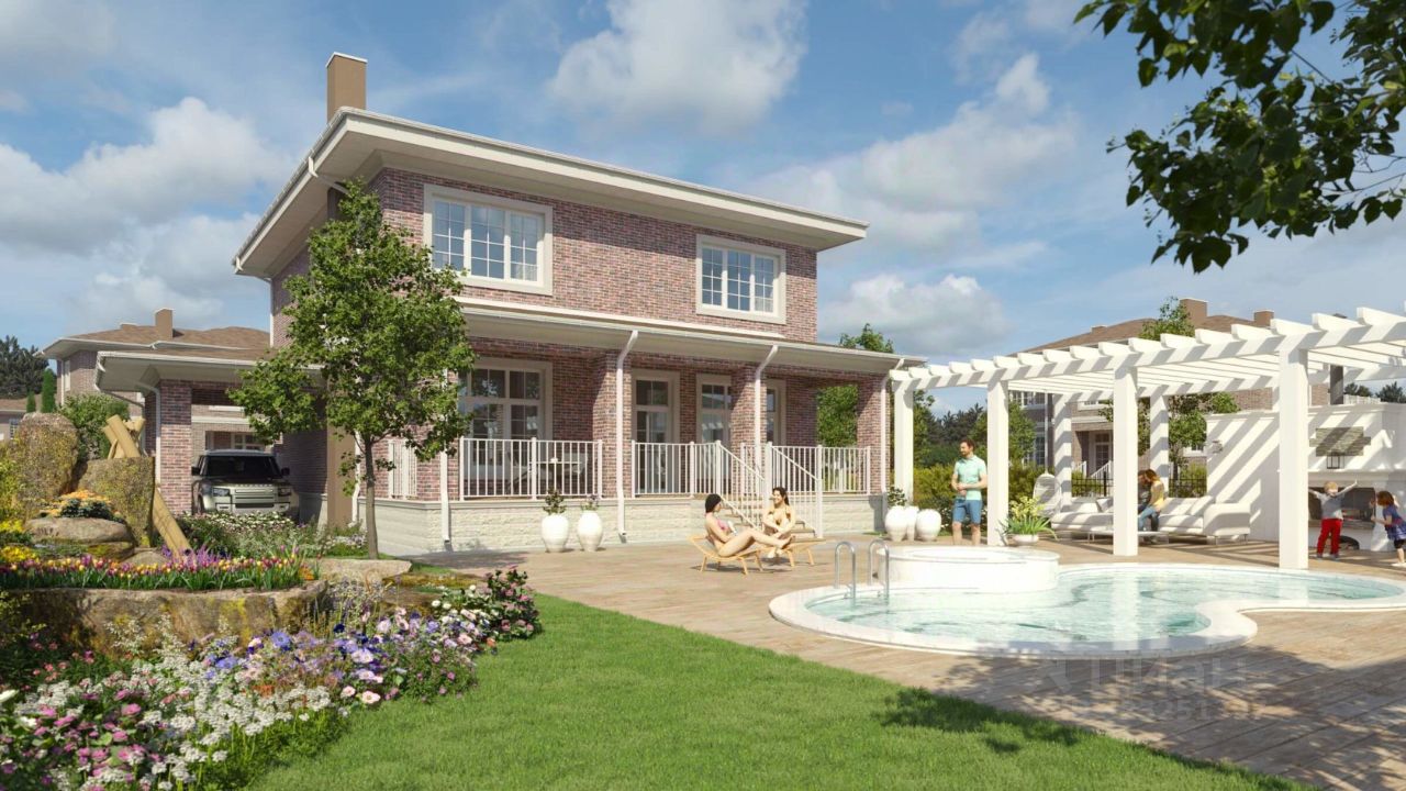 ОСНОВНЫЕ ХАРАКТЕРИСТИКИ - Общая площадь: 245.3 м² - Площадь участка: 8.95 сот. - 2 этажа - 4 спальни - 3 ванные комнаты - Терраса: 27.9 м² - Навес для машины - Отделка: Чистовая