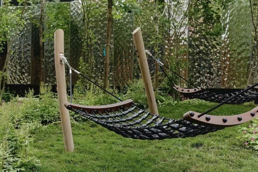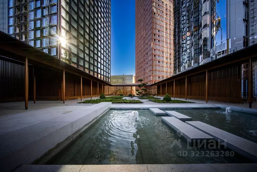 Территория у проекта небольшая, при этом вполне достаточная чтобы разместить все необходимое. Большая часть засеяна газонами, одна детская площадка. Японский сад с прудом и фонтаном выглядят роскошно.