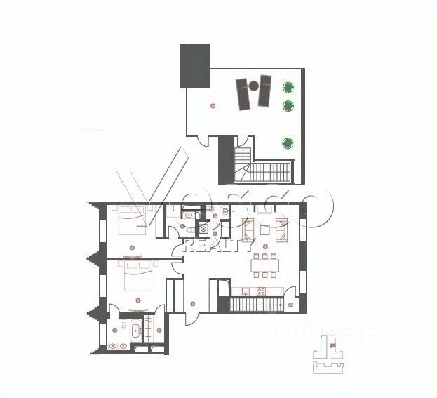 Лот 169838. ЖК ''Большая Дмитровка IX'' - Уникальный пентхаус в самом сердце столицы общей площадью 121 кв.м - это редкое сочетание престижного расположения, абсолютной тишины и безупречного комфорта, созданное для тех, кто ценит исключительность во всём. Расположенный на 6-м этаже элитного особняка ''Свет'' в составе комплекса клубного типа ''Большая Дмитровка, 9'', пентхаус предлагает продуманное пространство площадью 109 кв. м, дополненное шикарной видовой террасой в 38 кв. м - настоящим украшением резиденции. На террасе предусмотрены все необходимые выводы для воды, монтажа барбекю и других элементов, чтобы каждый момент, проведённый на открытом воздухе, становился особенным.
