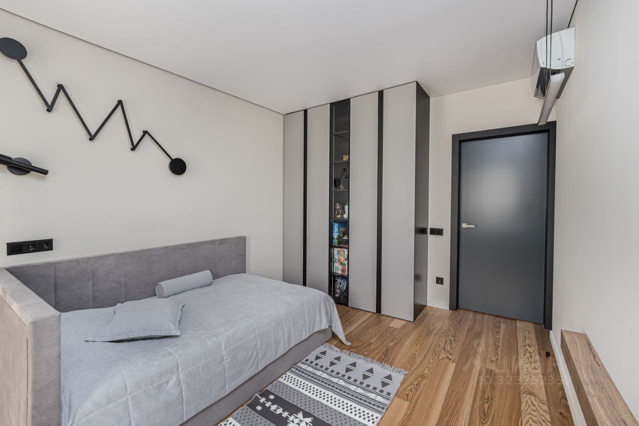 Индивидуальный пошив всех штор, покрывал и подушек (ткань - Италия, Испания), карнизы производство Италия. Во всех комнатах, включая кухню присутствуют blackout.