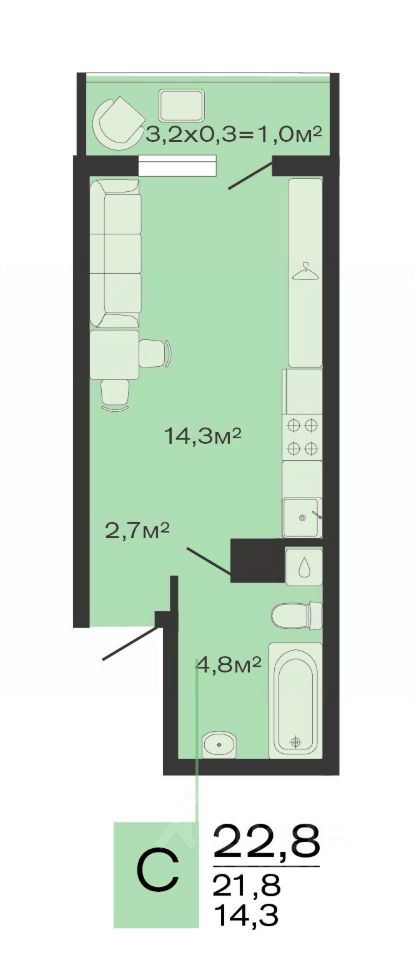 продам 1-к, Дзенпарк ЖК, 42 736 000 ₽