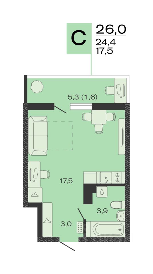 Общая площадь26 м2