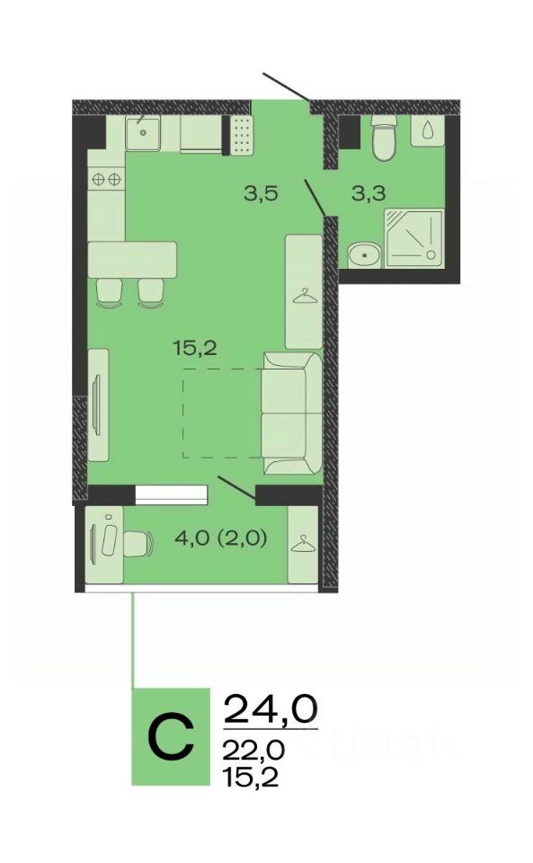 Общая площадь24 м2
