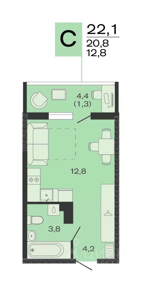 В продаже квартира в жилом комплексе ''Дзенпарк'' от застройщика ГК ''Лендекс''!