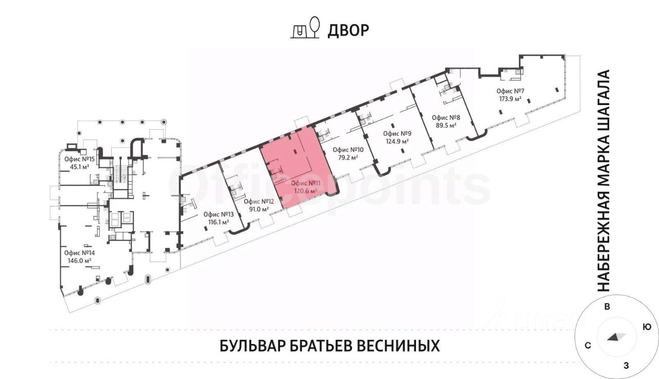 Продается офисное помещение на 1 этаже в жилом комплексе Марк, В класса, который находится по адресу: ул. Автозаводская, д. 23/436, к. 2, п. 2.