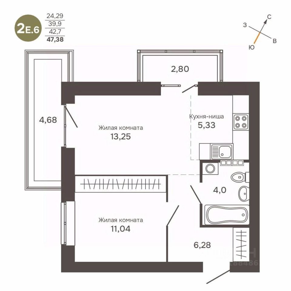 Общая площадь42,14 м2
