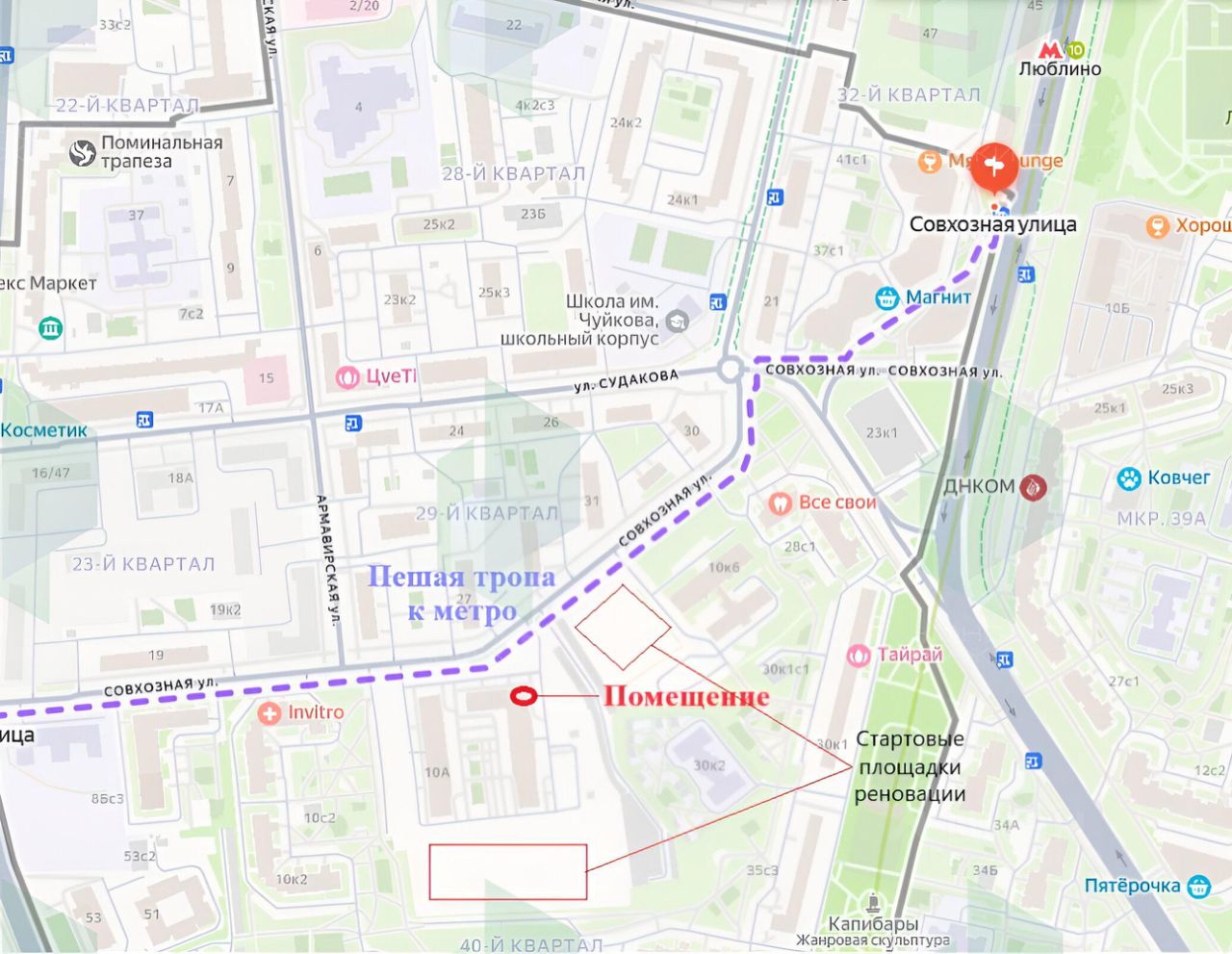 Сдаю помещение 45м2 на первой линии ул. Совхозная 10а, на пути пешеходного трафика к метро Люблино, до метро 7 мин пешком, отличные рекламные возможности.