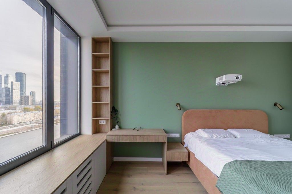 Просторная кухня-гостиная 18 м² с домашним кинотеатром, акустикой Bowers & Wilkins и системой мультирум. Вечер, закат, бокал, музыка. Спальня 16 м² оборудована рабочей зоной, современным проектором JVC, системой хранения. Вторая спальня (детская) с двухуровневой кроватью, рабочей зоной и вместительной системой хранения, предлагается фото с альтернативной меблировкой (диван). Техническое оснащение отвечает самым высоким требованиям: инженерная доска премиального класса, бытовая техника Asco, Neff, Siemens, Liebherr, измельчитель отходов Insinkerator, система фильтрации питьевой воды с обратным осмосом, сантехника Grohe и Gappo, кондиционирование мультисплит Hitachi и центральный пылесос.