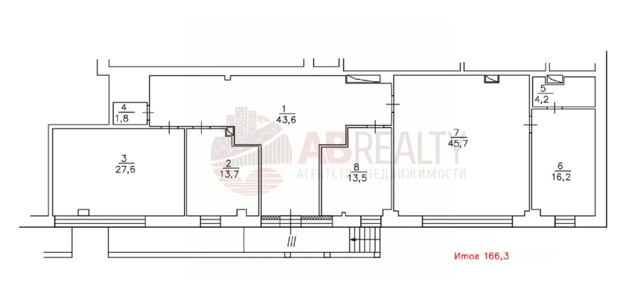 Предлагается нежилое помещение площадью 166,3 кв.м.