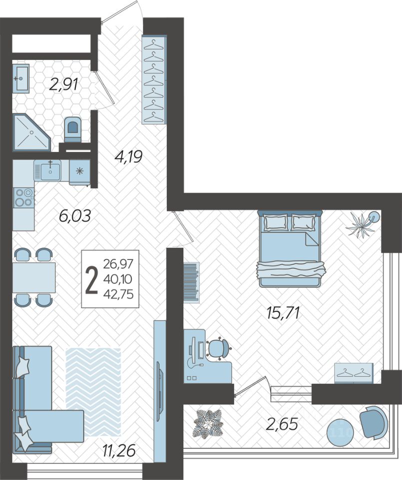 Застройщиком спроектированы одно-, двух- и трехкомнатные квартиры.