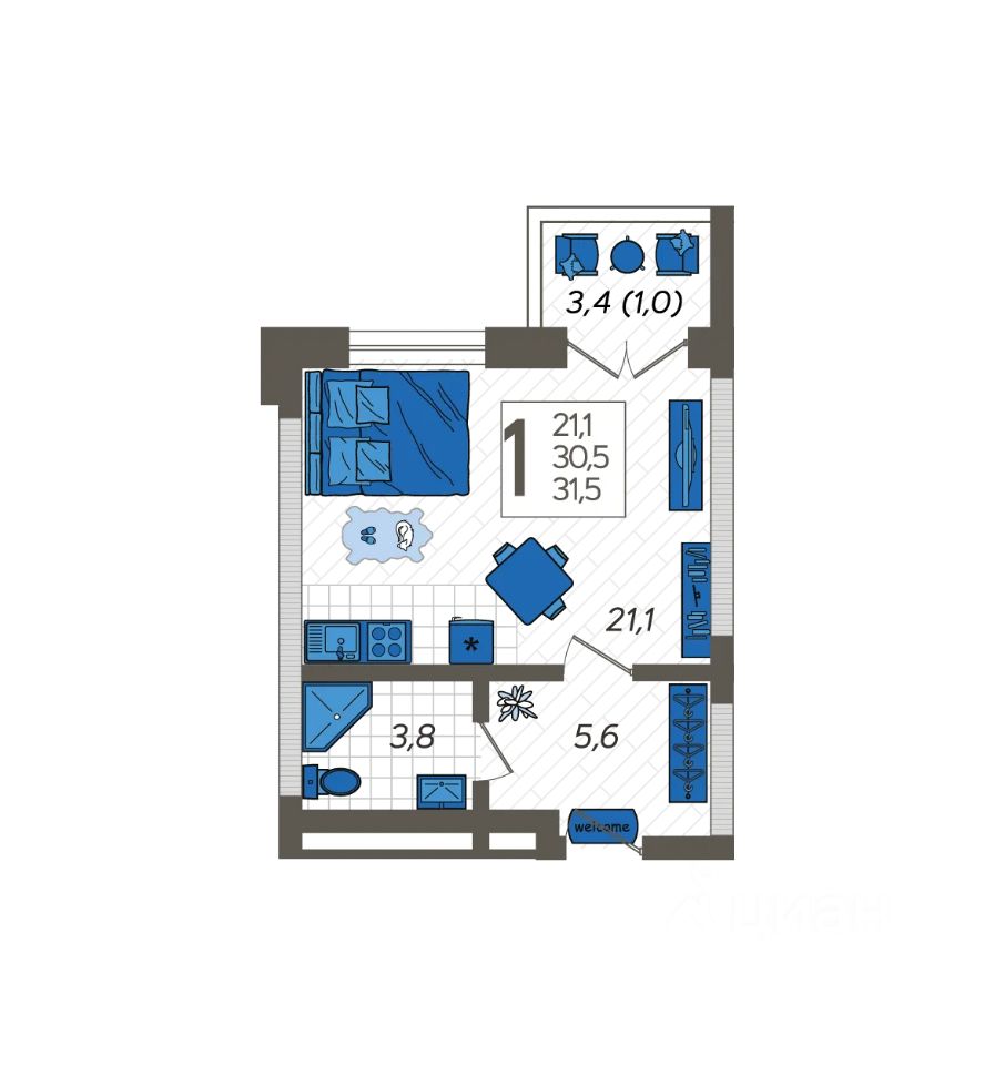 Продаётся студия в сданном доме (Литер 5), срок сдачи: III-кв. 2024, общей площадью 31.46 кв.м., на 8 этаже. Жилой комплекс ''Летний'' расположен в ущелье реки Кудепста.
