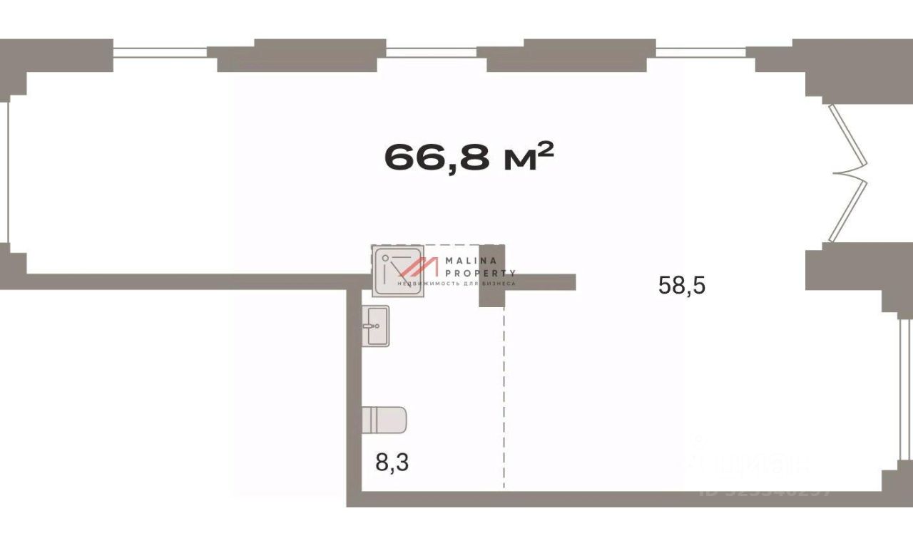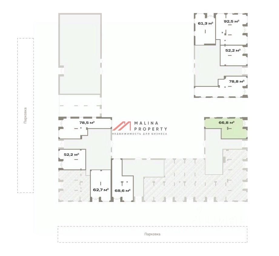 Помещение 66,8 м2 располагается на 1 этаже, открытая планировка, отдельный вход с фасада, витринные окна по фасаду. Место для размещения рекламы.