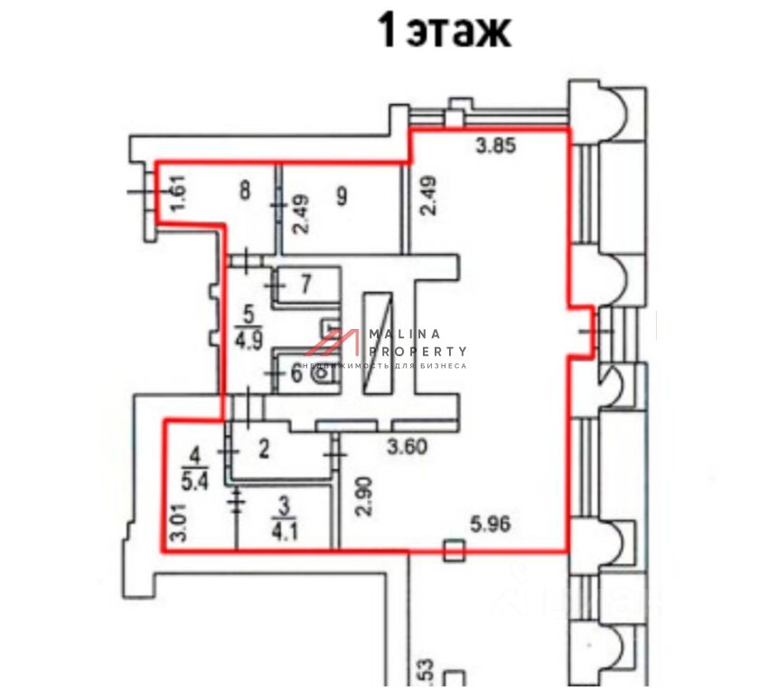 84,5 м2 на 1 этаже, открытая планировка, отдельный вход с фасада и со двора, высота потолка 3,8 м, витринные окна по фасаду. Электрическая мощность 30 кВт. В помещении выполнен качественный ремонт. Место для размещения рекламы на фасаде.