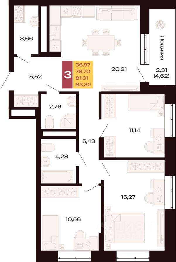 Продается Трёхкомнатная квартира площадью 83.32 кв.м. на 27 этаже. Квартира в ЖК ''Первый Южный'' располагается в центральной части перспективного микрорайона, в границах улиц Шаумяна, Амундсена, Волгоградской и Советских Женщин с отличной транспортной доступностью, близостью к центру и развитой социальной инфраструктурой.
