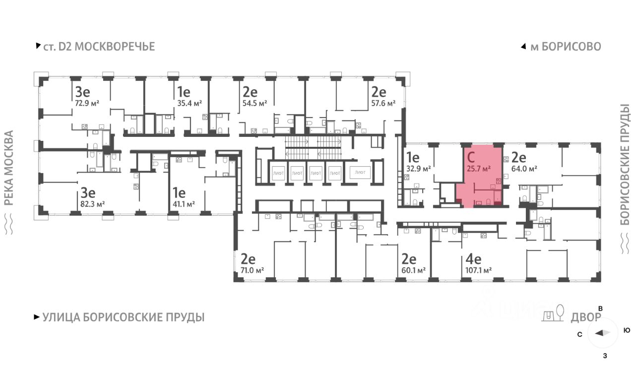 Продается квартира-студия общей площадью 25.7 кв. метров на 32 этаже жилого комплекса ВЕЙВ. Комплекс располагается на юге Москвы в районе Москворечье-Сабурово. В пешей доступности расположены станция МЦД ''Москворечье'' и станция метро ''Борисово''. Для автомобилистов есть удобное сообщение с Каширским шоссе.