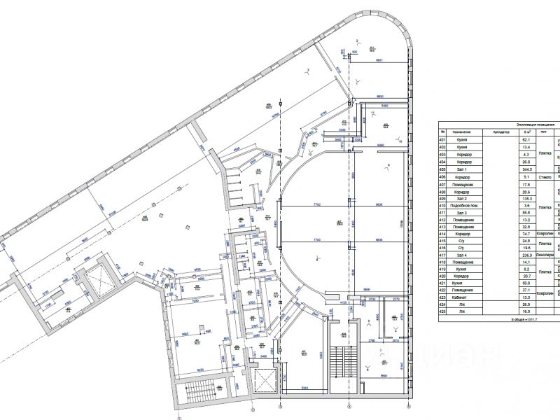 - open-space формат с несколькими большими залами
