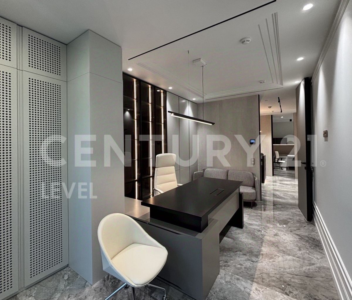 Помещение офиса предусматривает практичное планировочное решение: стойка администратора/офис менеджера, переговорная, кабинет руководителя и два кабинета сотрудников, санузел. Офис оборудован приточной вентиляцией и кондиционированием.