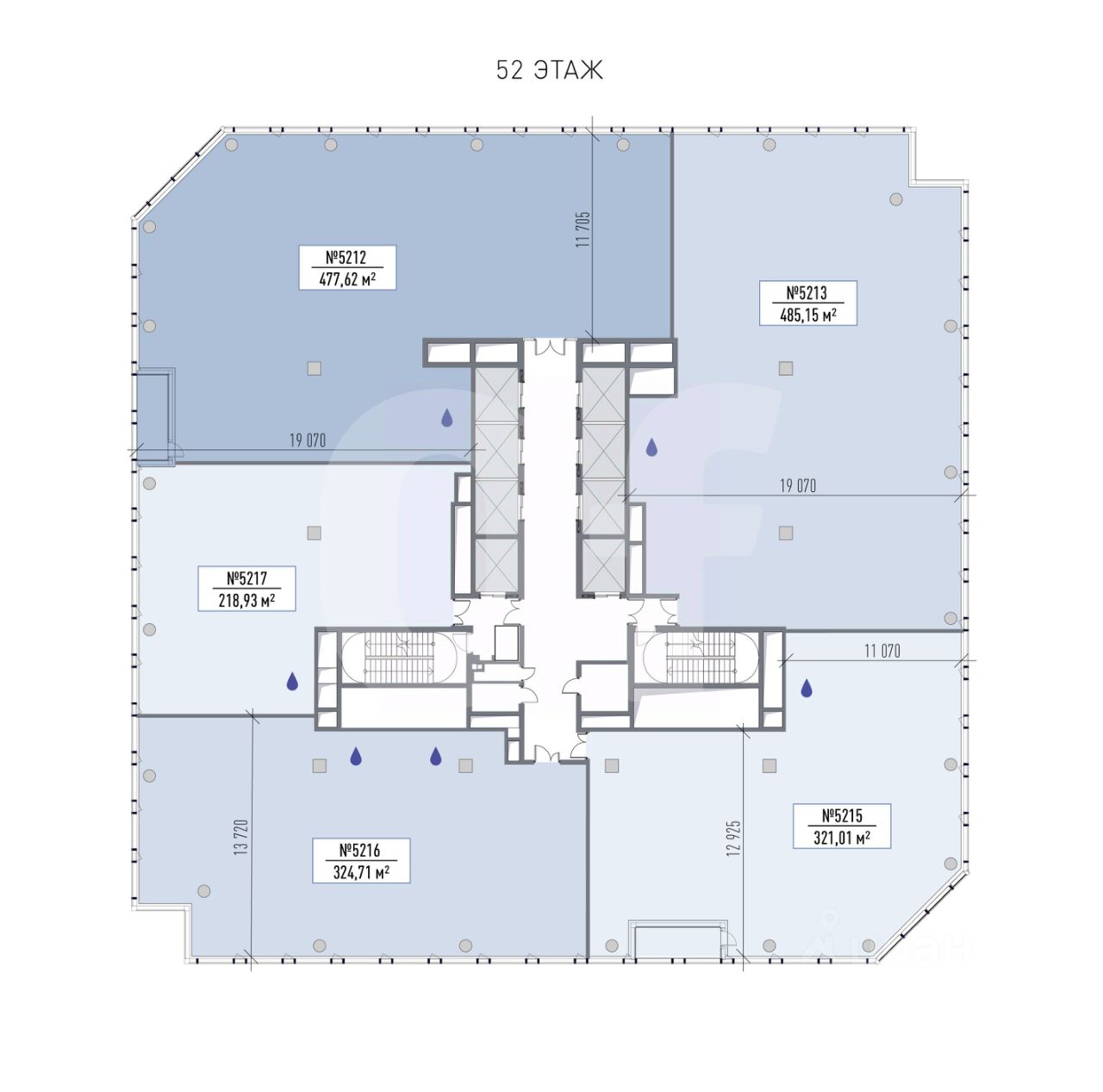 Площадь: 5 977 м2. Планировка: открытая. Состояние: под отделку. Ставка (включая эксплуатацию): 89 060 руб. за м2/год. Арендная плата: 44 359 302 руб./мес. Налог: включая НДС. Коммунальные расходы: оплачиваются по факту. Этаж: 52, 55, 56 из 61. Тип аренды: Прямая аренда. Охрана: круглосуточная охрана здания.