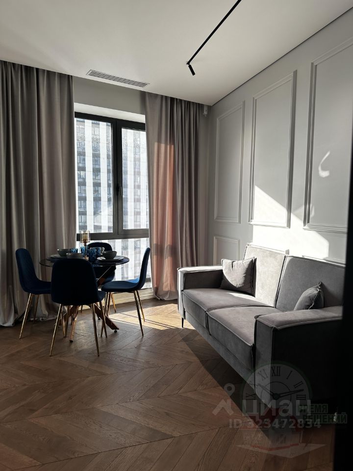 id:1192. Видовая Дизайнерская 2к квартира мечты в ЖК Бизнес-Sky Класса WELLTON TOWERS! В квартире сделан качественный ремонт из экологически чистых материалов! Общая площадь квартиры 58 кв.м. Кухня-гостинная 17,3 кв.м., укомплектована всем необходимым для вашего комфорта. Функциональная кухня со встроенной техникой фирмы NEFF (Духовой шкаф, варочная панель, вытяжка, посудомойка, встроенный холодильник, микроволновая печь). Также на кухне установлен измельчитель и фильтр для питьевой воды. Датчики протечки в мокрых точках. Две изолированные комнаты 12 и 10,5 кв.м. В спальне за скрытой дверью оборудованная гардеробная. Полы из натурального паркета ''французская ёлка''. Совмещенный санузел 4 кв.м. Весь СУ отделан крупноформатным итальянским керамогранитом.
