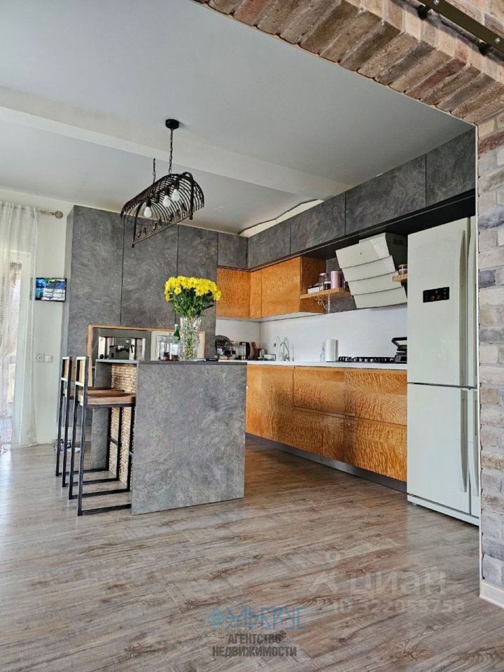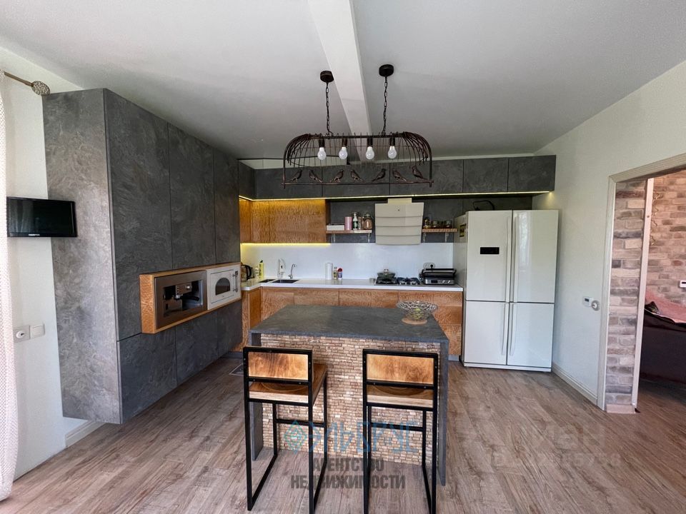 Вся мебель и техника остаются! Кухня из натурального шпона с керамическим покрытием, немецкая фурнитура Гостиная с уникальной отделкой кирпичом ''Старинный замок'' (слепки конца XVII века, усадьба барона Врангеля) Дизайнерские светильники, лестница из закалённого стекла (нагрузка до грузовика) Люстра из чешского хрусталя Стол из слэба шелковицы со смолой и ковкой ручной работы Диван и кресла в гостиной LoftDesign из натуральной кожи