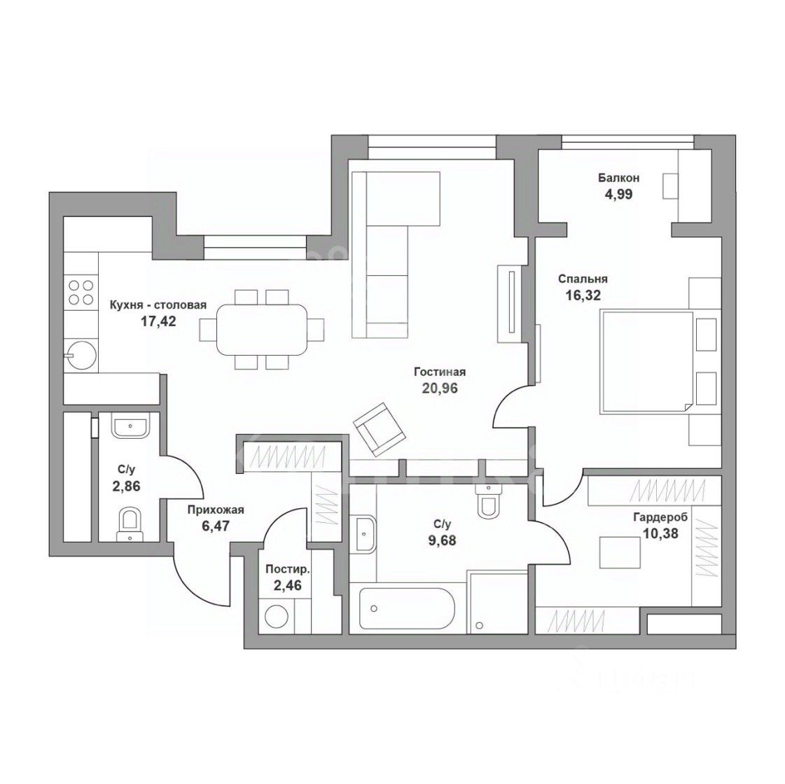 Квартира оснащена современными инженерными системами: •канальная система кондиционирования — Mitsubishi Electric, •приточно-вытяжная система, •бытовая техника ведущих брендов (включая холодильник Liebherr и винный холодильник Liebherr).