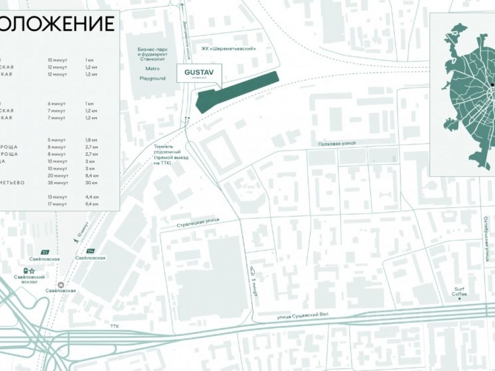 Продается офисное пространство в креативно-деловом кластере ''GUSTAV'', по адресу: г. Москва, САО, ул. Складочная, 6. Объект обладает превосходной транспортной доступностью: пешком от станций метро Савёловская (10 минут) и Дмитровская (22 минуты). Остановки наземного транспорта расположены в шаговой доступности. Обеспечен удобный выезд на основные магистрали: Ленинградский проспект и Савёловское шоссе. Место отличается высокой пешеходной проходимостью. . . Креативно-деловой кластер Gustav — это городское пространство с высоким инвестиционным потенциалом. Здесь органично переплетаются историческая и современная архитектура, а также качественная инфраструктура для ведения бизнеса.