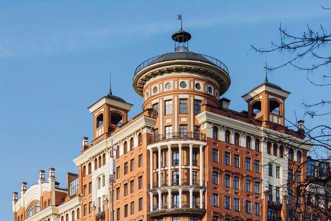 Архитектура жилого комплекса выполнена в стиле традиционной архитектуры столицы. Фасад из красного кирпича украшен большим количеством декоративных элементов, доминанта композиции - круглая башня с куполом, в которой располагаются верхние уровни пентхауса. Отделка лобби выполнена с использованием натуральных материалов, камня и дерева.